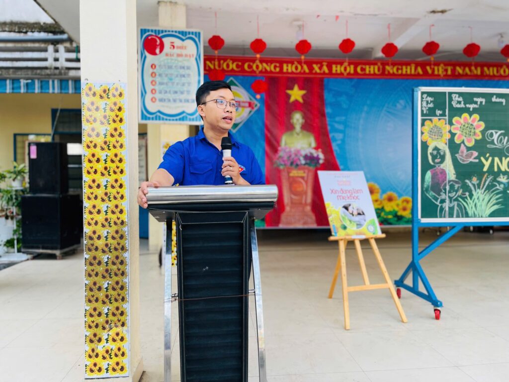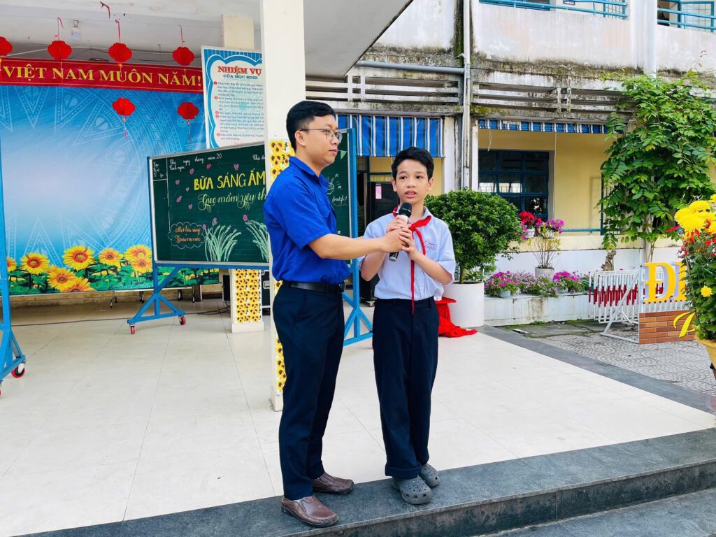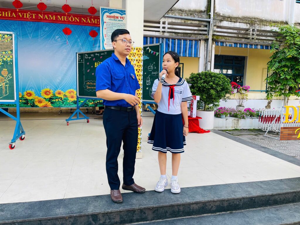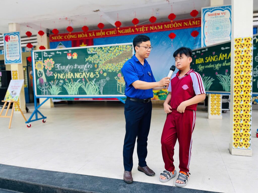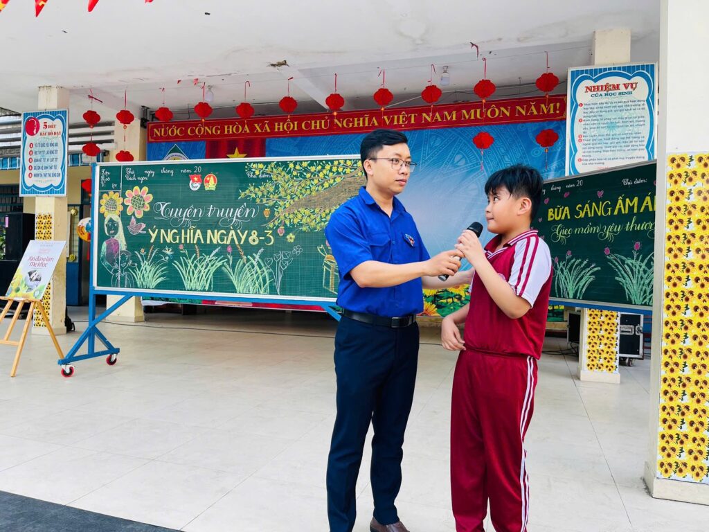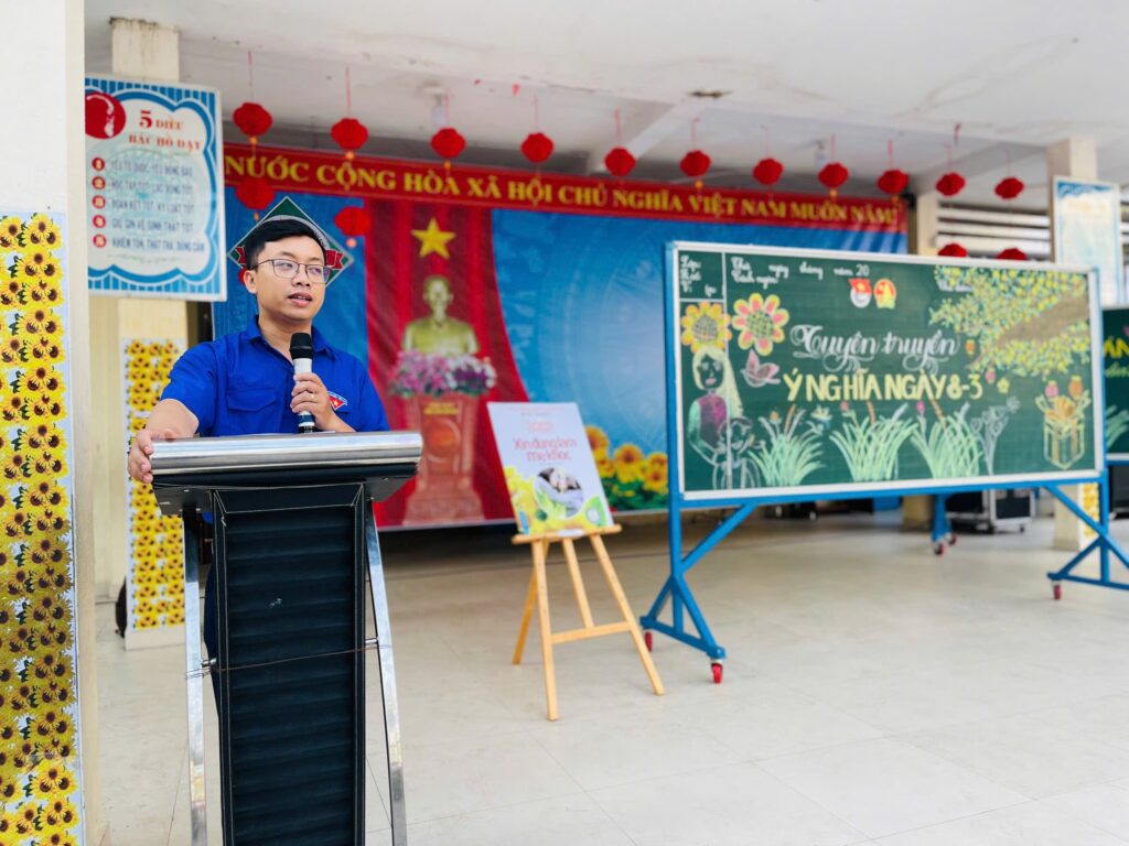 Tiếp nối chương trình, thầy giáo Nguyễn Thành Luân – Bí thư Chi đoàn Trường đã tuyên truyền về ý nghĩa của Ngày Quốc tế Phụ nữ 8/3. Thầy giúp các em hiểu rõ hơn về lịch sử ra đời của ngày 8/3, vai trò quan trọng của phụ nữ trong gia đình và xã hội. Qua đó, thầy cũng nhắn nhủ các em học sinh hãy biết yêu thương, kính trọng bà, mẹ và cô giáo bằng những hành động nhỏ nhưng thiết thực mỗi ngày.