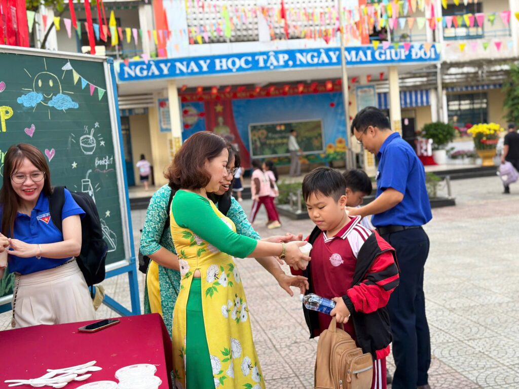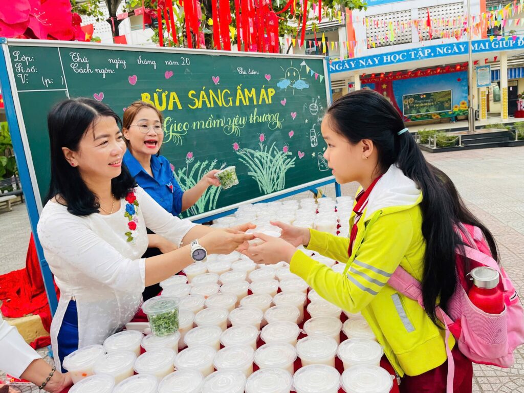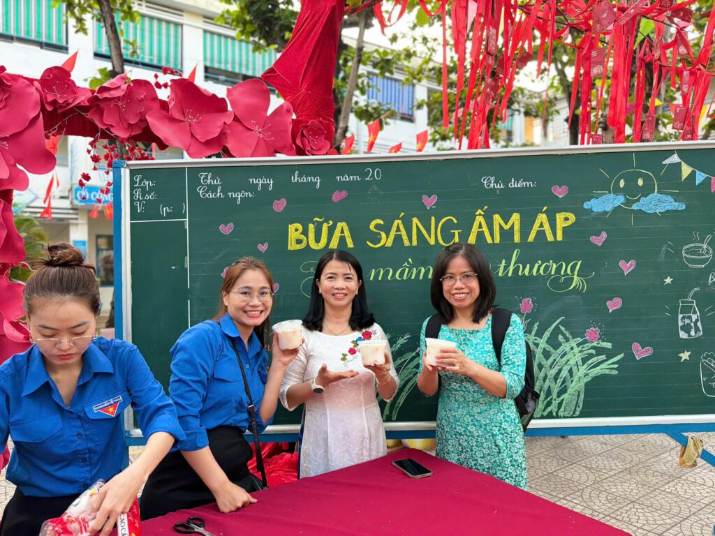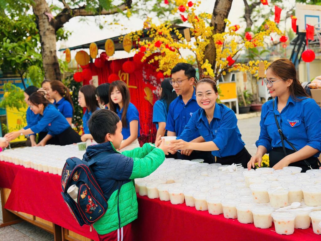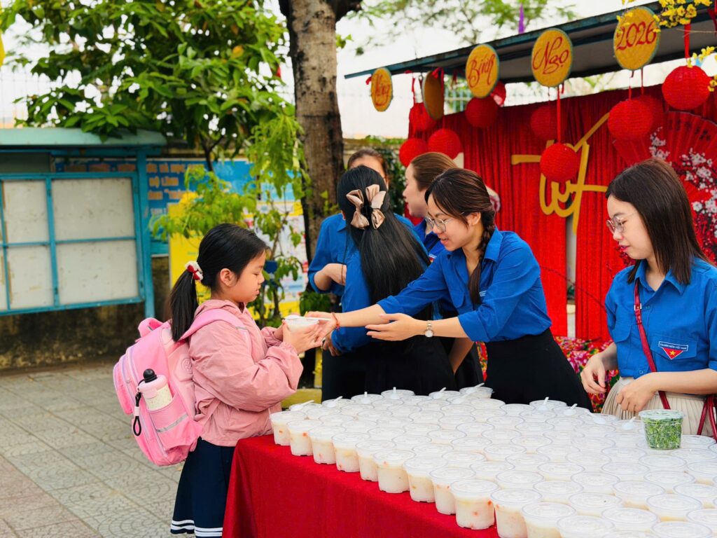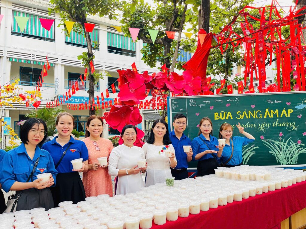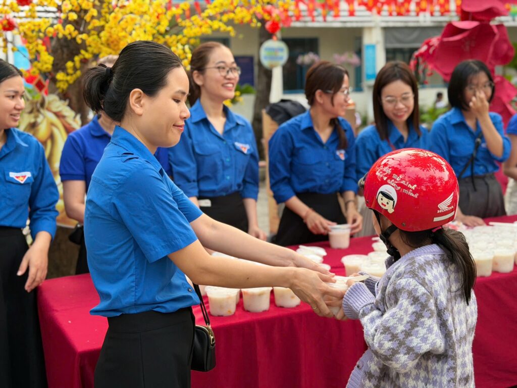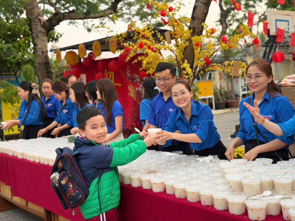 🌅 Sáng nay 2/3/2026 – nhằm ngày 14 tháng Giêng, sân trường Tiểu học Đinh Bộ Lĩnh rộn ràng hơn thường lệ. Từ rất sớm, các cô trong tà áo dài duyên dáng, các thầy cô trong Chi đoàn nhà trường đã tất bật chuẩn bị từng phần quà, từng tô cháo nóng hổi được xếp ngay ngắn trên những dãy bàn phủ khăn đỏ thắm.
