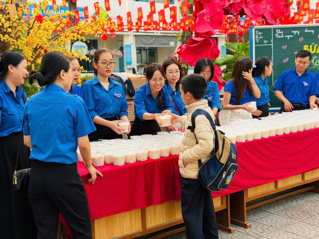 💚 Không chỉ là một bữa ăn, đó còn là sự quan tâm và tinh thần sẻ chia được lan tỏa giữa thầy và trò, giữa nhà trường và cộng đồng. Hình ảnh thầy cô ân cần trao từng phần quà, những nụ cười rạng rỡ dưới sắc đỏ mùa xuân… đã tạo nên một bức tranh đầy yêu thương.