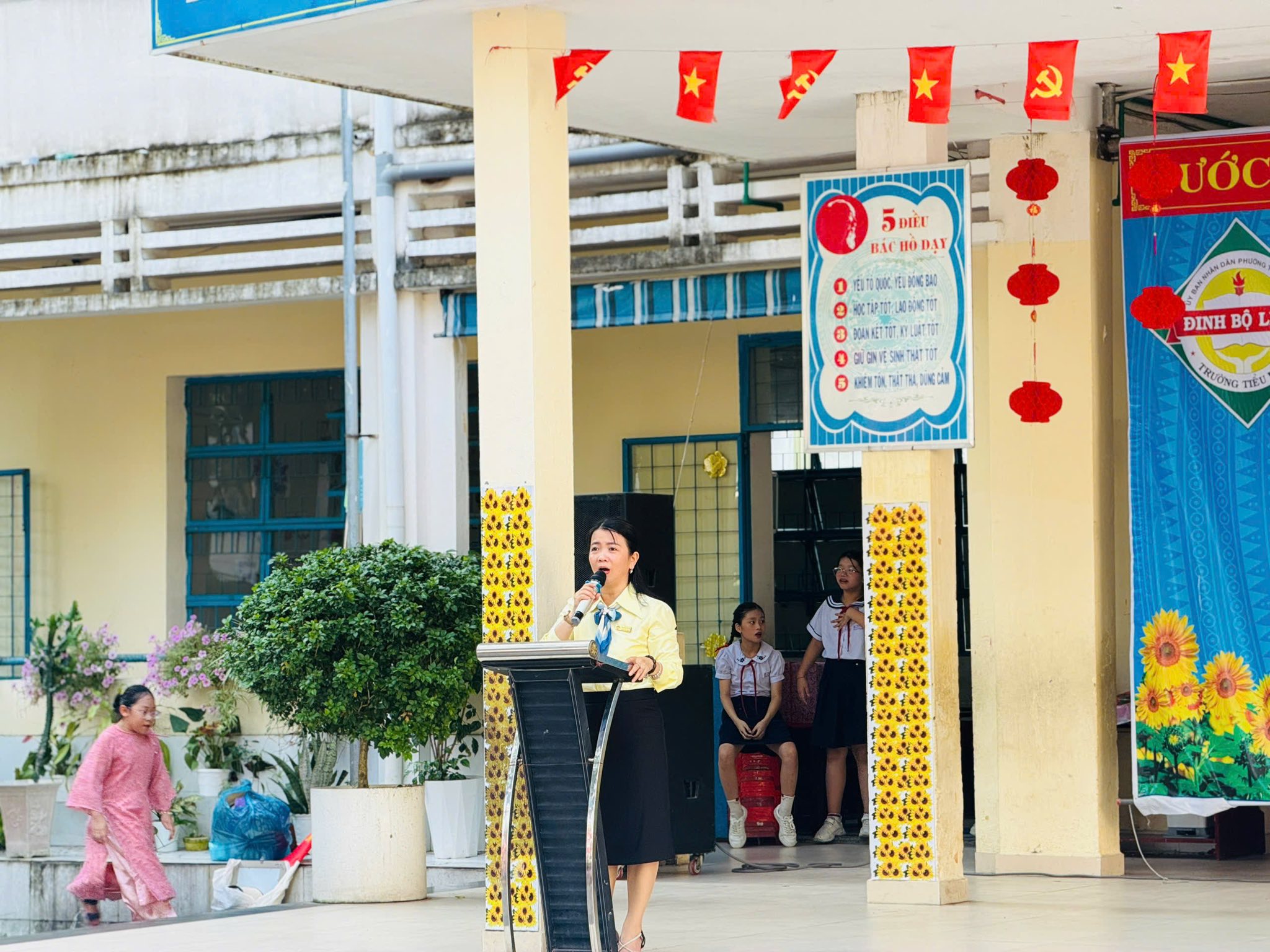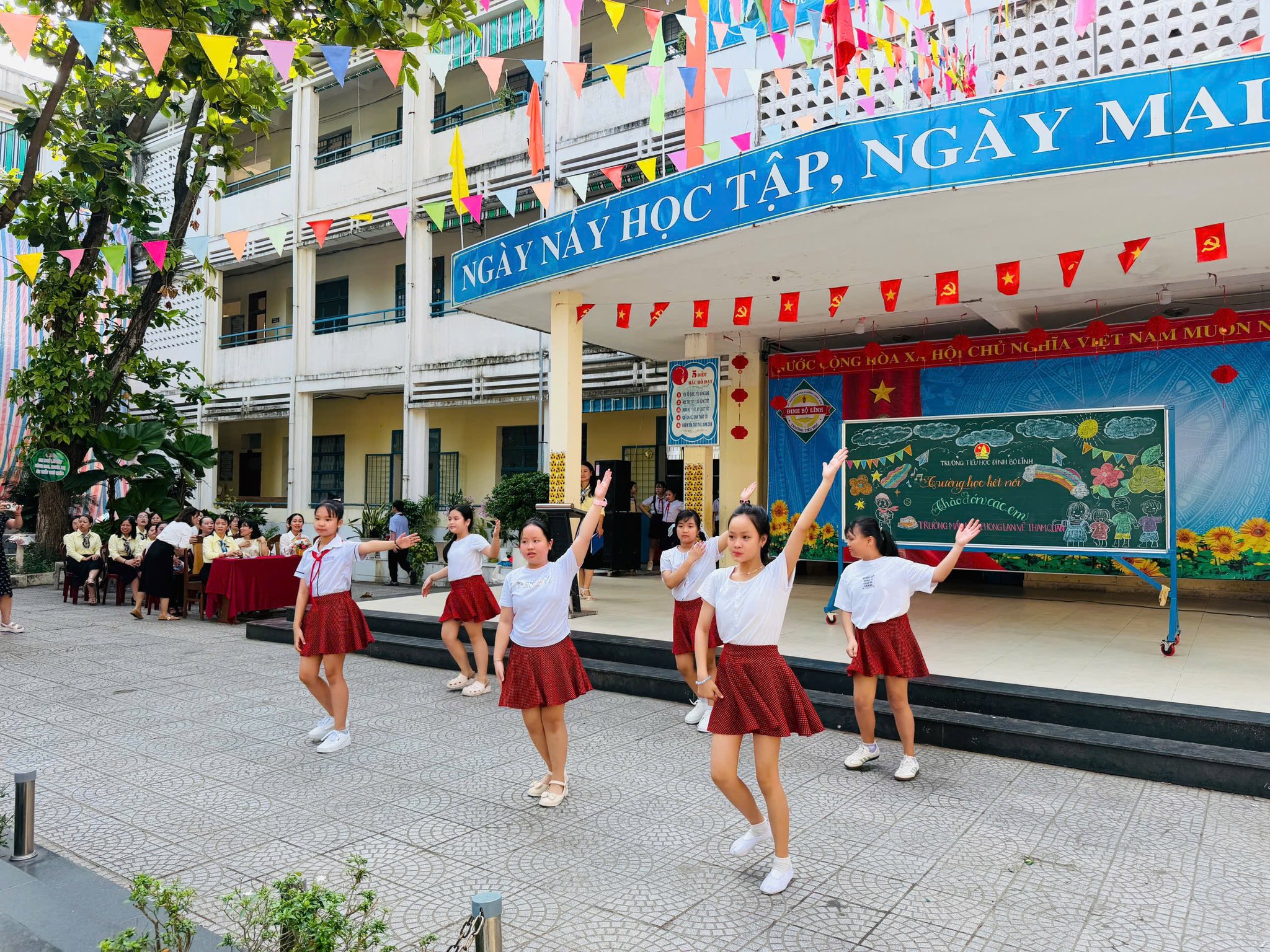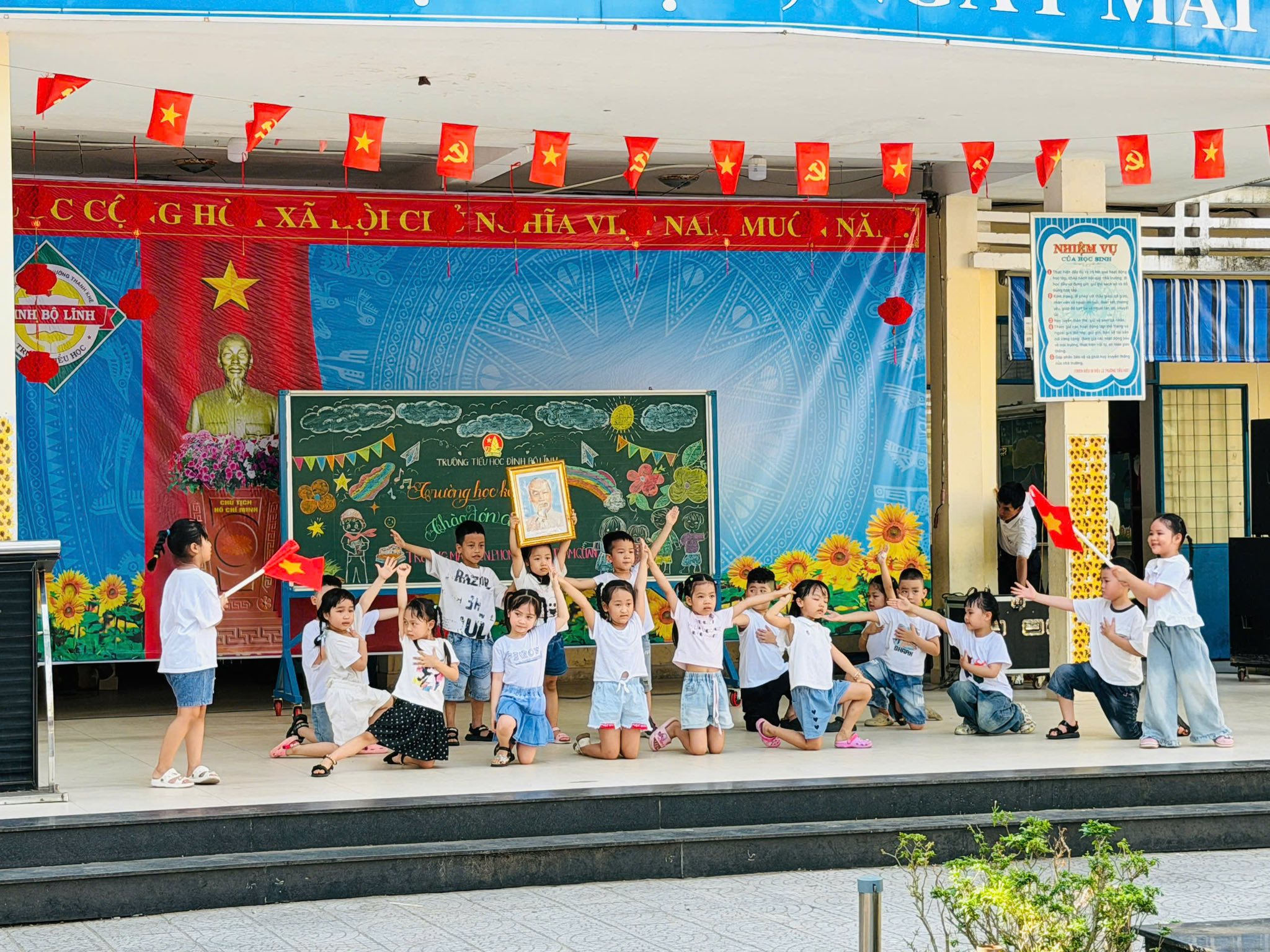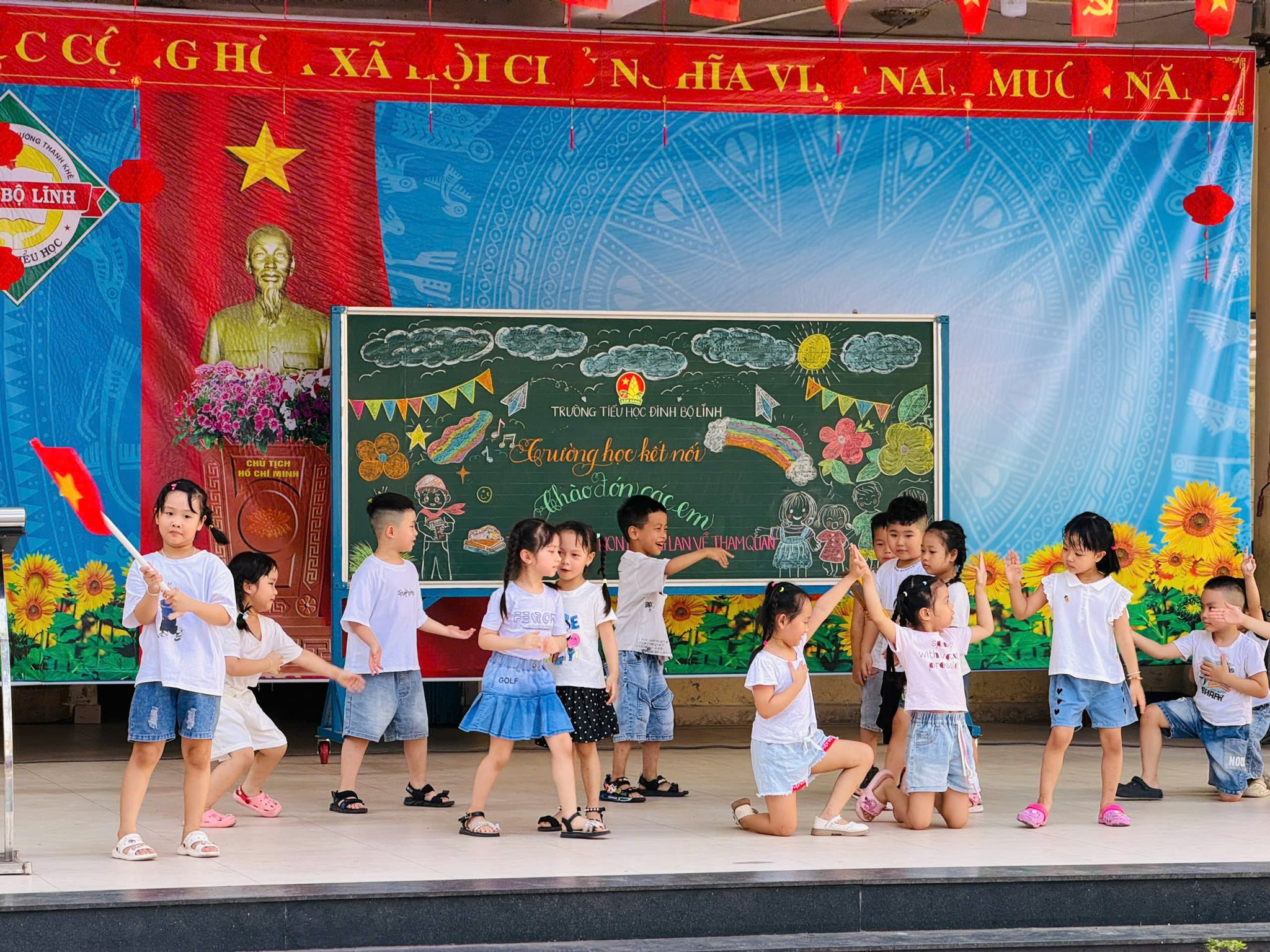 Chương trình mở đầu bằng những tiết mục văn nghệ sôi động, đáng yêu do học sinh Trường Tiểu học Đinh Bộ Lĩnh biểu diễn, mang đến không khí hào hứng cho các bé.