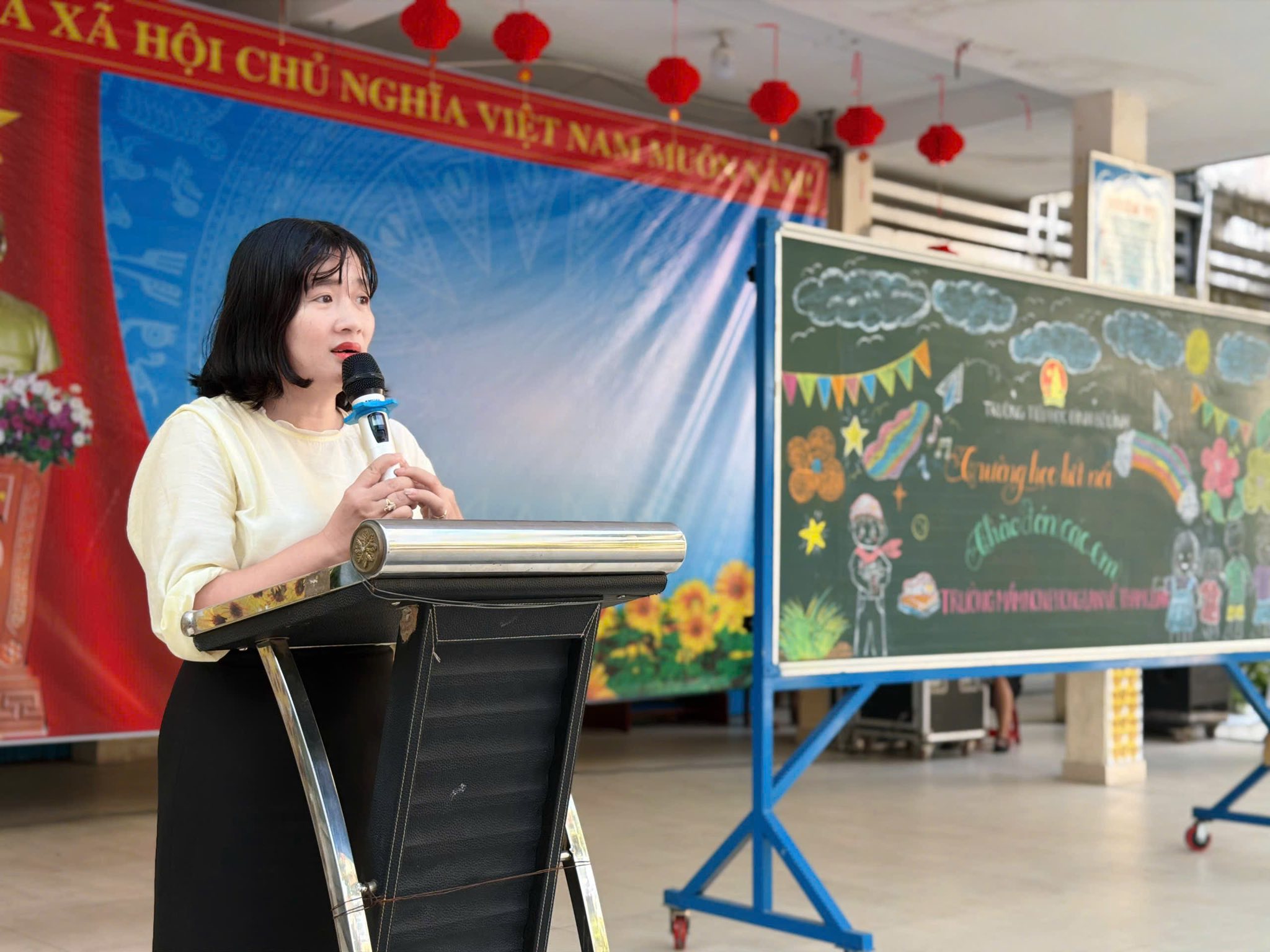 Cô Trần Thị Hải Minh – Bí thư chi bộ- Hiệu trưởng nhà trường đã phát biểu chào mừng, gửi những lời chúc tốt đẹp đến các bé, đồng thời trao tặng những phần quà ý nghĩa cho Trường Mầm non Phong Lan.