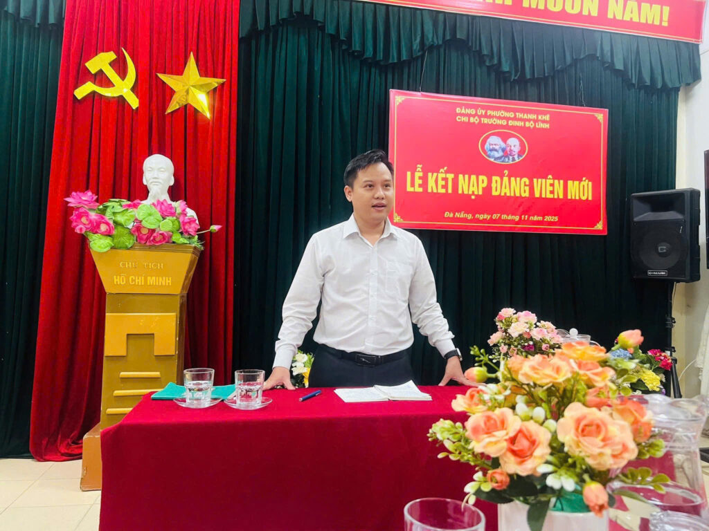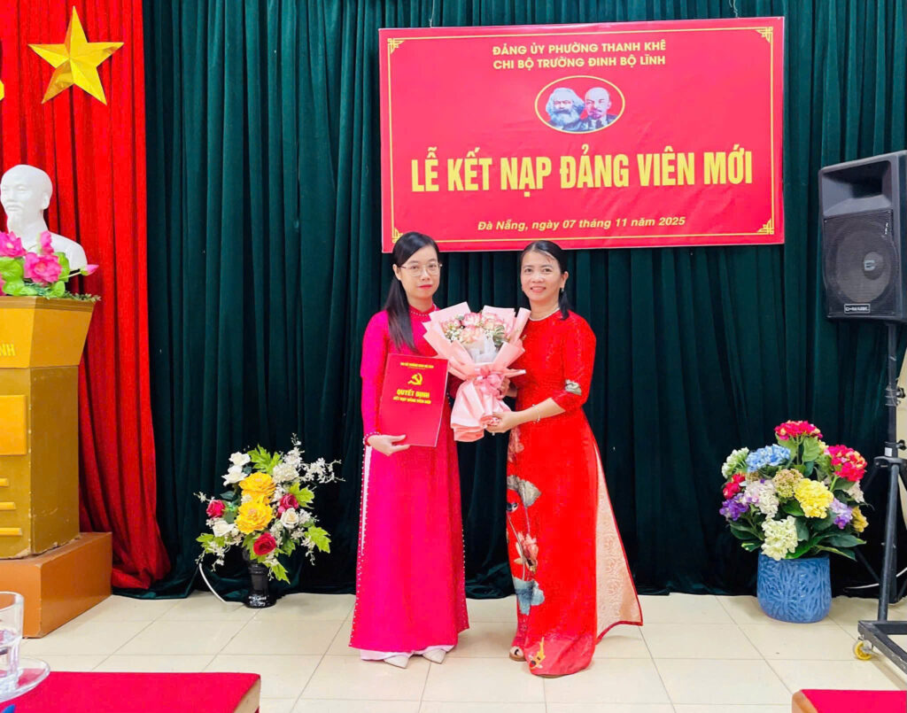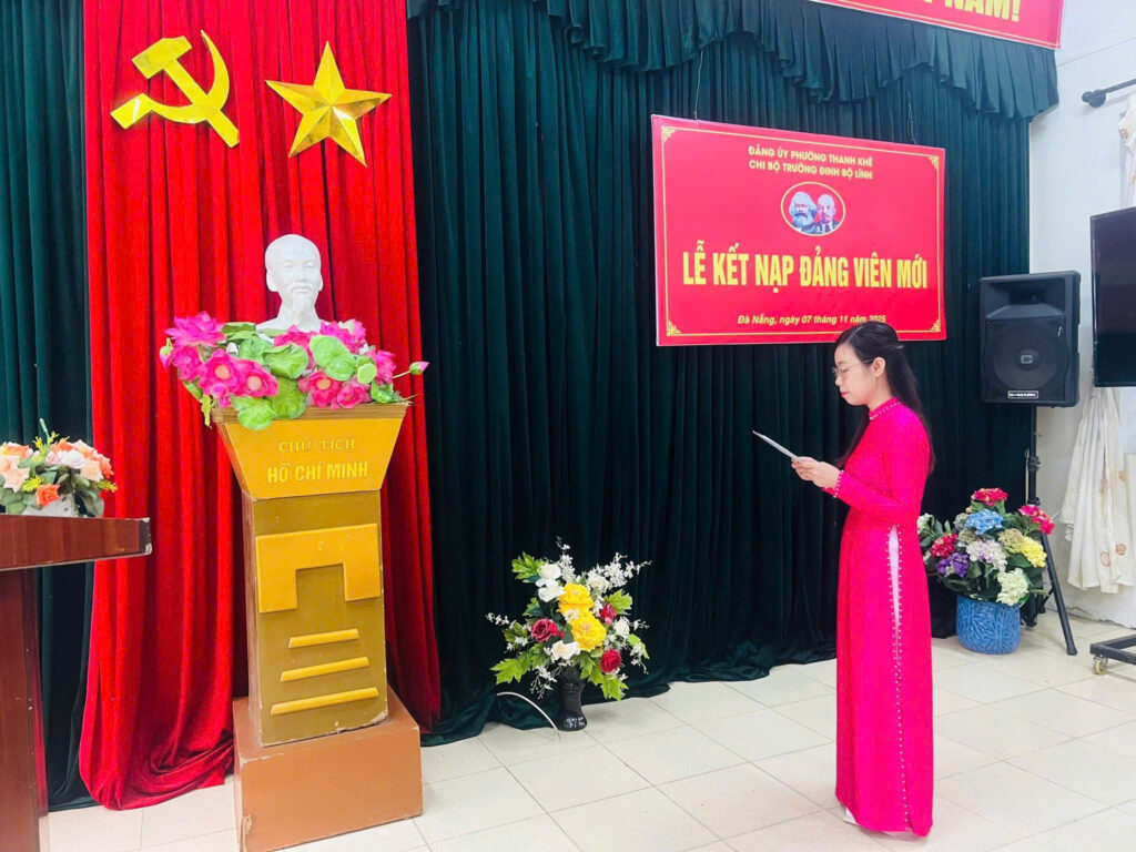 🫱Chiều ngày 7/11/2025, Chi bộ trường Tiểu học Đinh Bộ Lĩnh tổ chức lễ kết nạp đảng viên cho quần chúng ưu tú Trần Thị Ánh Nguyệt – giáo viên Anh văn.