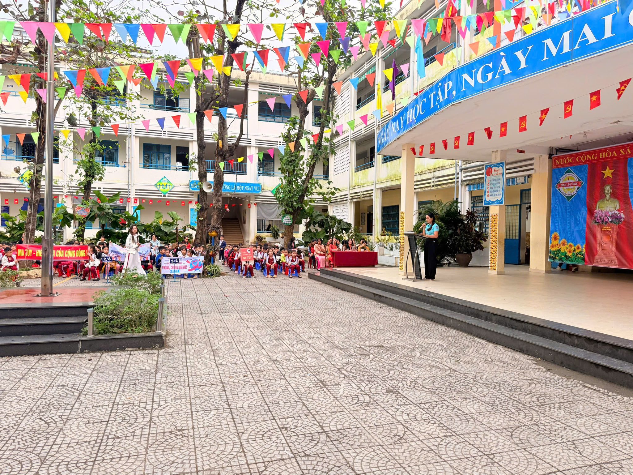 Trong buổi chào cờ sáng nay, trường Tiểu học Đinh Bộ Lĩnh đã triển khai nhiều nội dung giáo dục và phong trào ý nghĩa nhằm bồi dưỡng kiến thức, kỹ năng và tinh thần học tập cho học sinh toàn trường.
