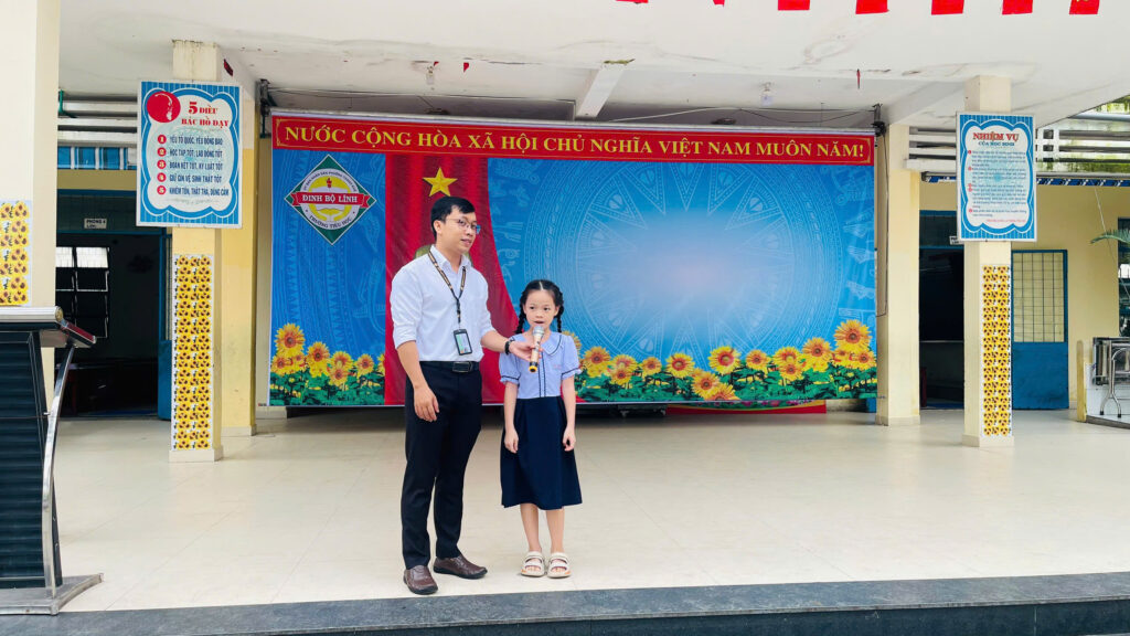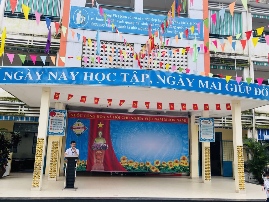 📢 Sáng thứ Hai, ngày 10/11/2025, toàn thể 819 học sinh trường Tiểu học Đinh Bộ Lĩnh đã trang nghiêm thực hiện lễ Chào cờ đầu tuần trong không khí đầy tự hào và tôn kính. Sau nghi thức long trọng, nhà trường vinh dự giới thiệu cô Trần Thị Hải Minh – tân Hiệu trưởng sẽ đồng hành cùng tập thể sư phạm và học sinh trong chặng đường phát triển mới.