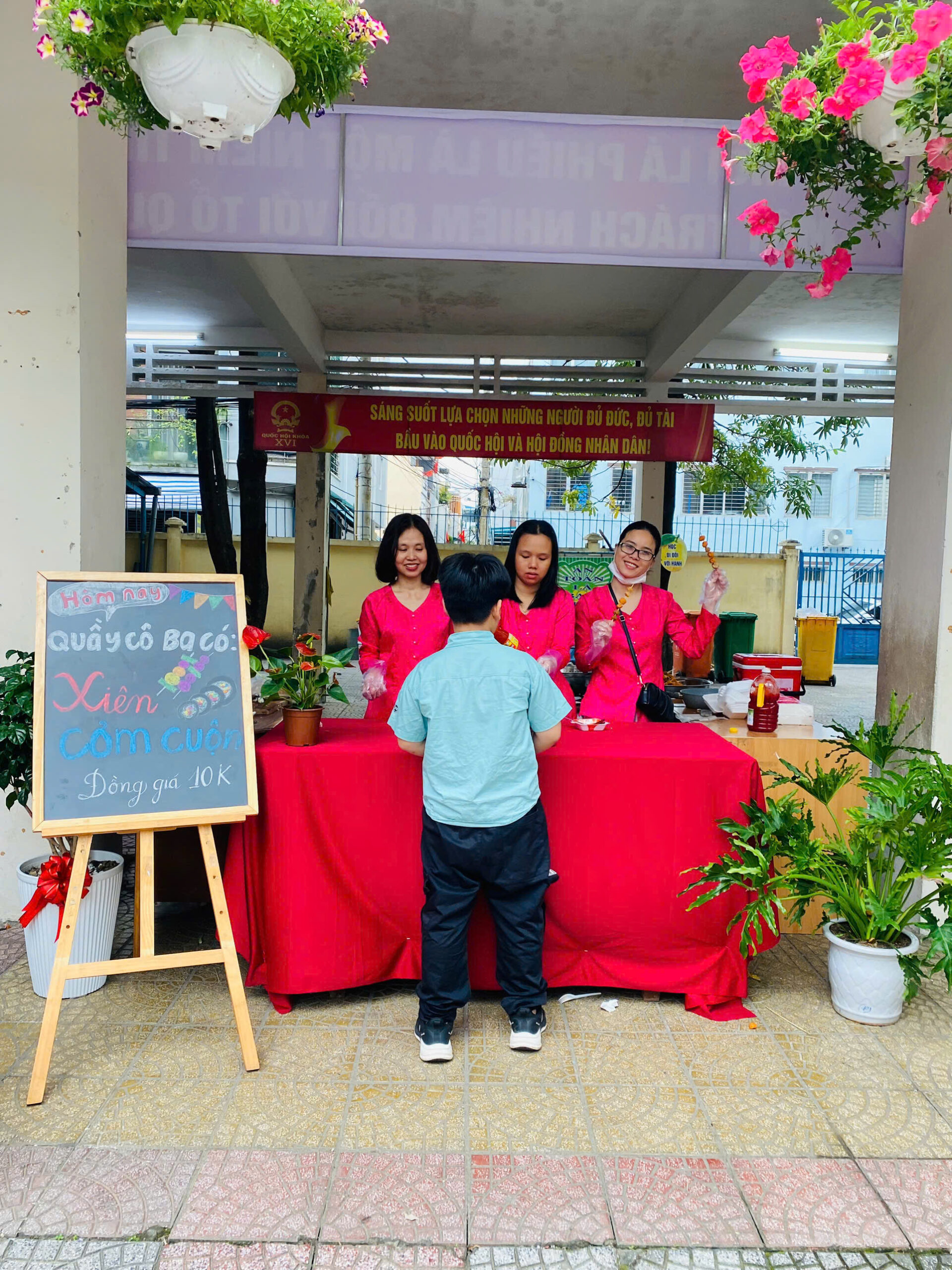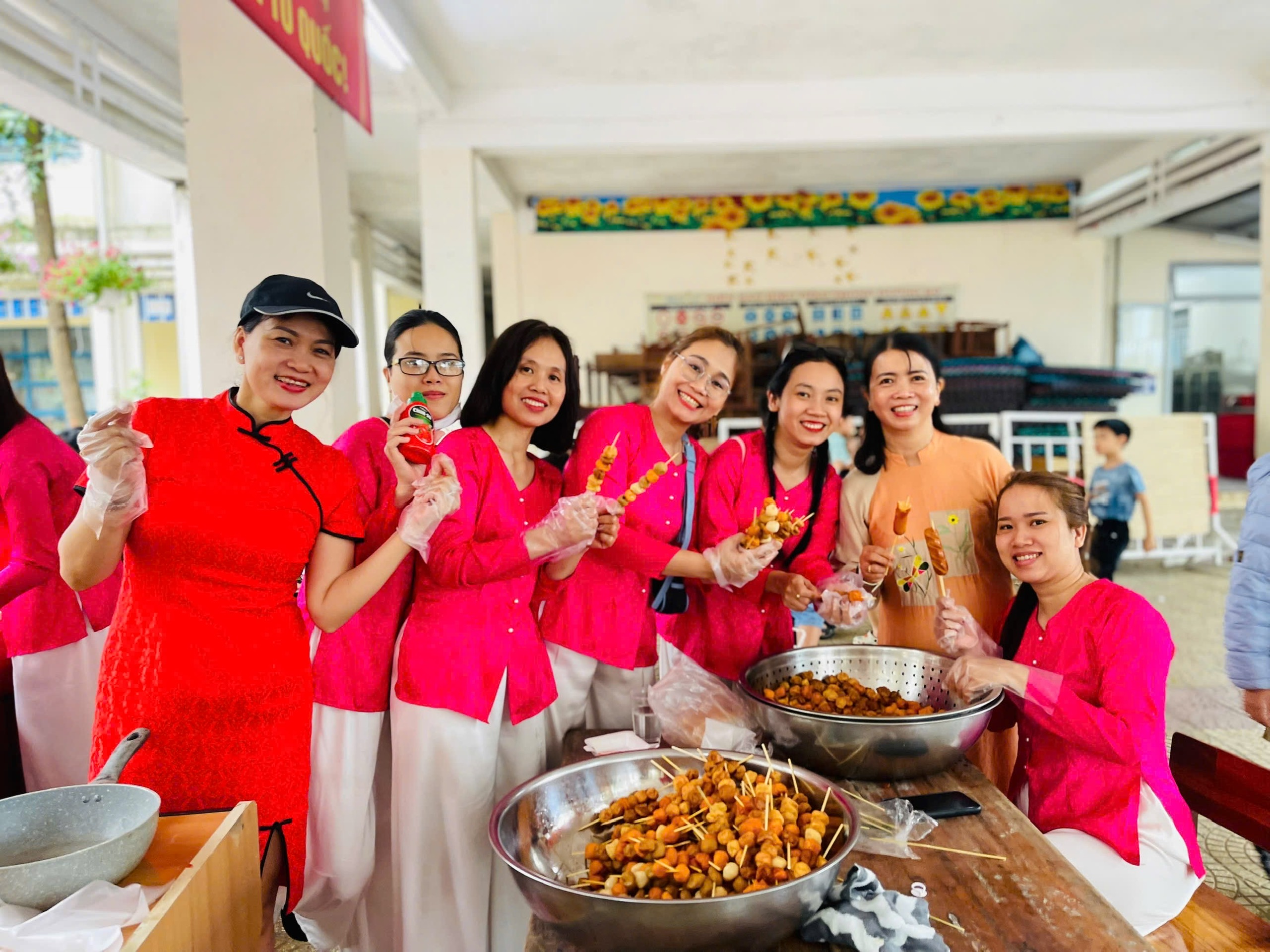 Bên cạnh sân khấu chính, khu vực ẩm thực thu hút đông đảo học sinh với những món ăn hấp dẫn, được nhà trường và giáo viên chuẩn bị chu đáo, đảm bảo vệ sinh và an toàn. Các em vừa thưởng thức những món ngon, vừa cùng nhau trò chuyện, chia sẻ niềm vui trong không khí ấm áp, thân thiện.