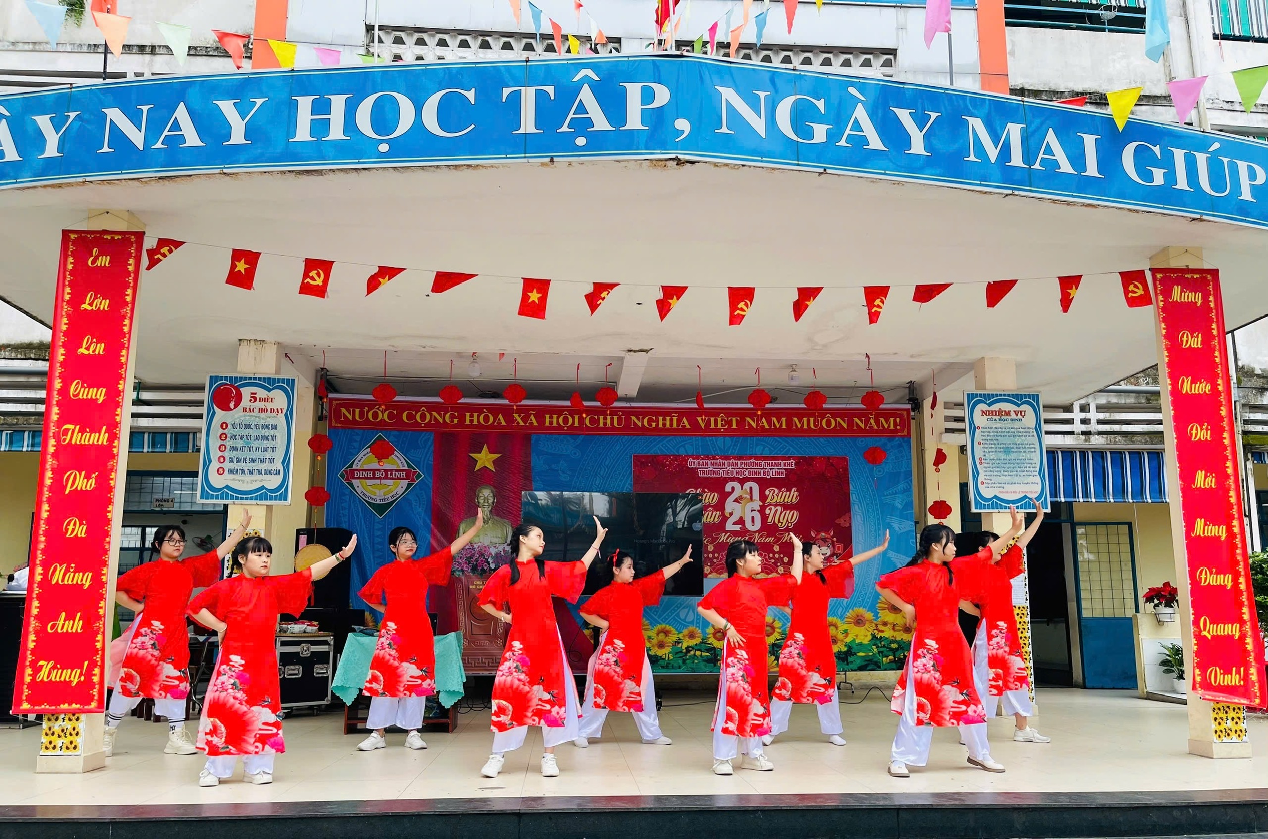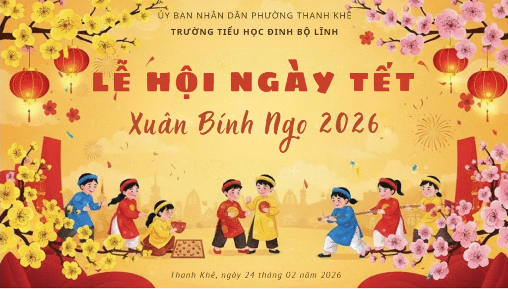 Sáng ngày 24/02/2026, trong không khí rộn ràng những ngày đầu xuân, Trường Tiểu học Đinh Bộ Lĩnh đã tổ chức thành công “Lễ hội Ngày Tết – Chào xuân Bính Ngọ 2026” với nhiều hoạt động vui tươi, ý nghĩa và đậm bản sắc truyền thống.