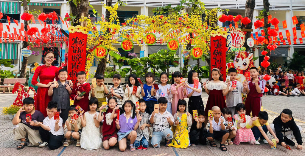 Trong chương trình, cô Trần Thị Hải Minh – BTCB – Hiệu trưởng nhà trường đã có bài phát biểu chia sẻ về ý nghĩa của ngày Tết cổ truyền dân tộc. Cô nhấn mạnh rằng Tết là dịp để mỗi người hướng về gia đình, gìn giữ và phát huy những giá trị văn hóa tốt đẹp của quê hương; đồng thời gửi gắm mong muốn các em học sinh luôn chăm ngoan, biết yêu thương, sẻ chia và trân trọng truyền thống dân tộc.
