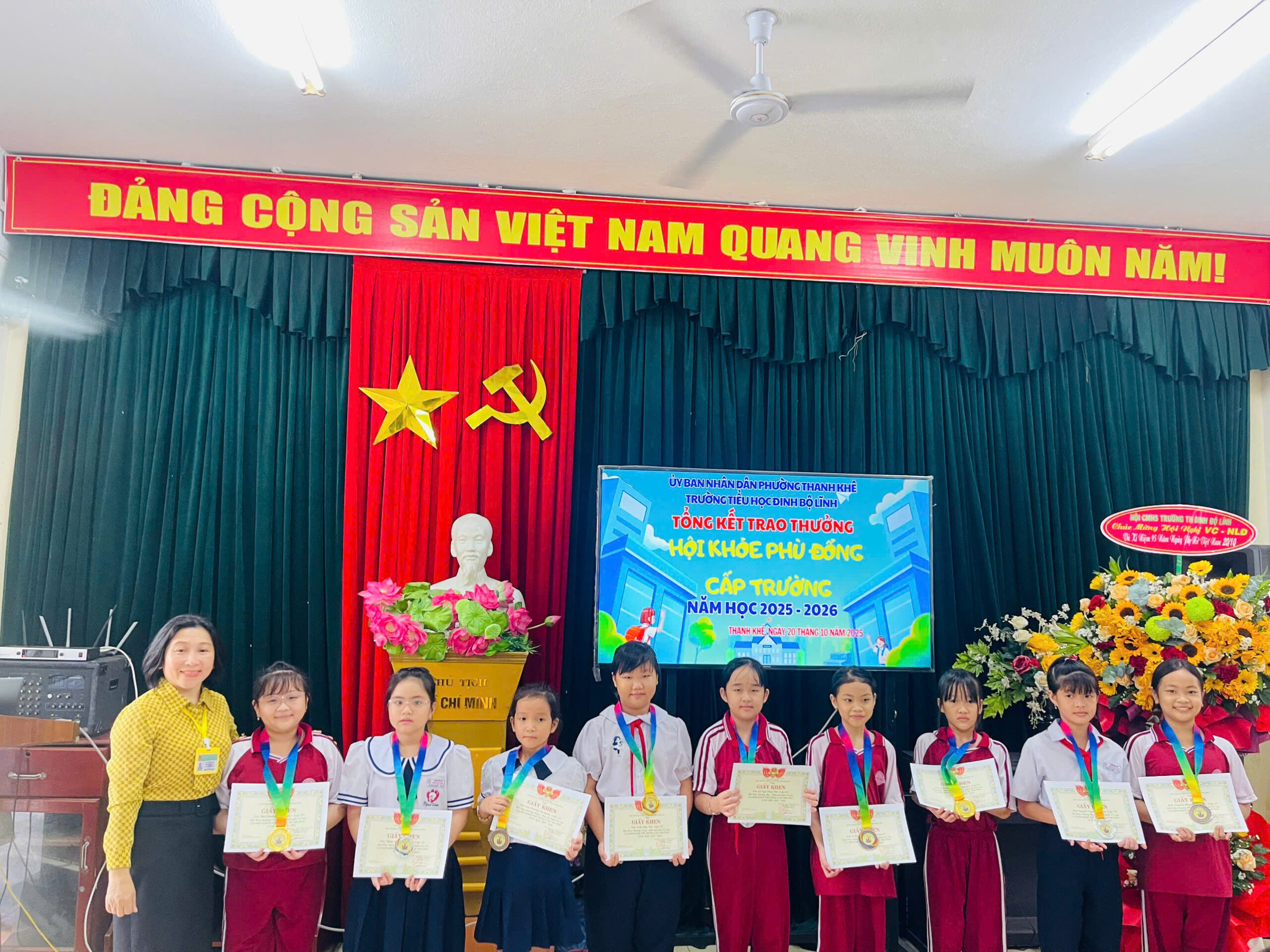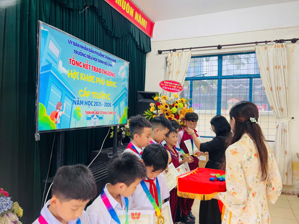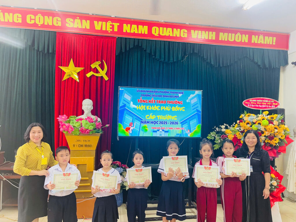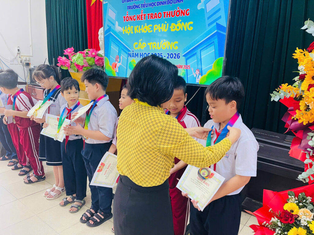 Giải Hội khỏe Phù Đổng cấp trường gồm các nội dung thi đấu: bóng bàn, cờ vua và các trò chơi dân gian như đổ nước vào chai ở khối lớp 1, kéo co ở khối lớp 2. Các em đã thể hiện tinh thần thi đấu hết mình, nghiêm túc, đoàn kết, và góp phần tạo nên mùa Hội khỏe Phù Đổng sôi động và ý nghĩa.