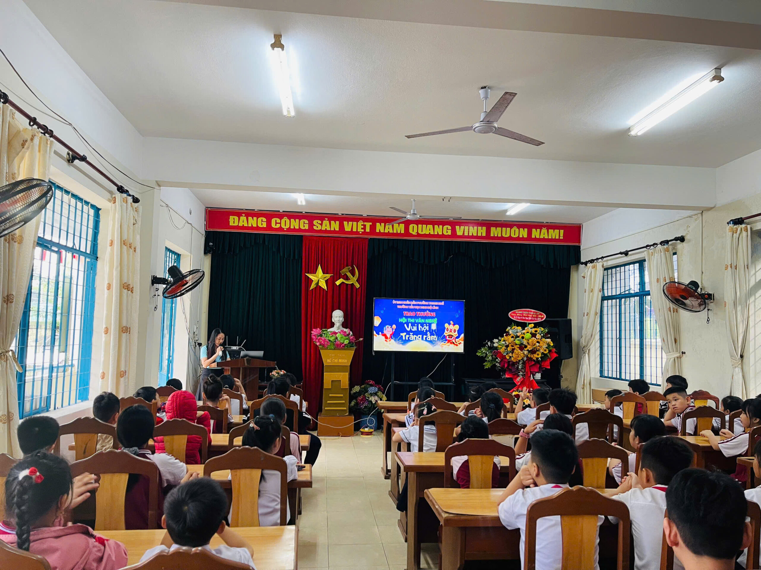 Bên cạnh đó, không khí không kém phần sôi động đó là những tiết mục văn nghệ với chủ đề: “Vui hội trăng rằm” được thể hiện bởi những tài năng nhí đến từ khối 1 đến khối 5 cũng được trao thưởng bởi những tiết mục xuất sắc. Đây là sân chơi bổ ích, thiết thực giúp các em mạnh dạn, tự tin, thể hiện năng khiếu của mình.