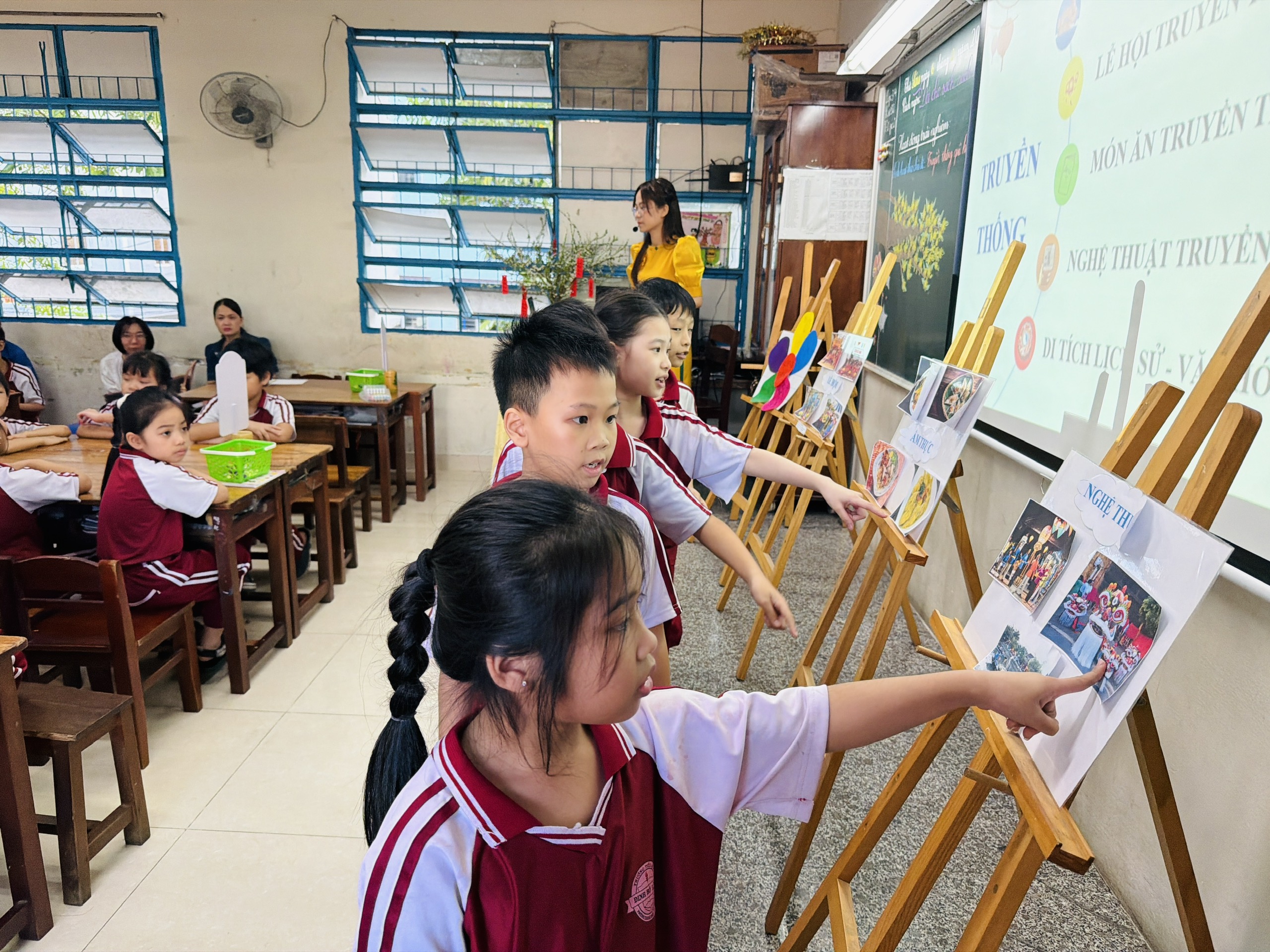 Học sinh sưu tầm và trưng bày tranh ảnh, hiện vật về nghề truyền thống địa phương như: nghề mộc, dệt lụa, làm gốm, làm lồng đèn… Các em còn được tham gia biểu diễn hát bài chòi.